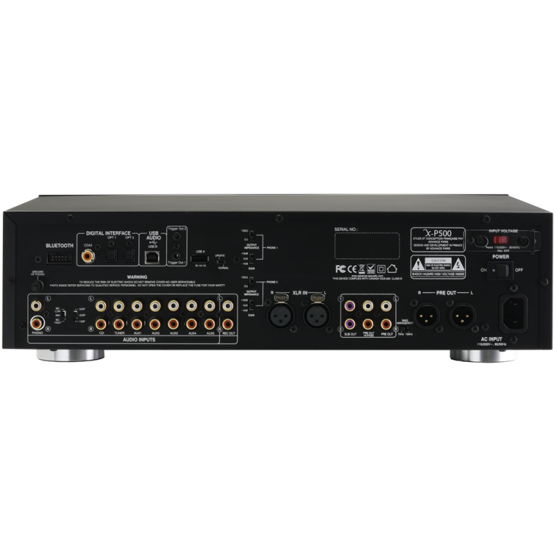 El preamplificador Advance Acoustic XP-500 es un preamplificador dual mono, ambos canales son independientes, alimentado por dos transformadores toroidales de alta capacidad de corriente. Este diseño proporciona una mejor separación de los canales y una imagen estéreo.