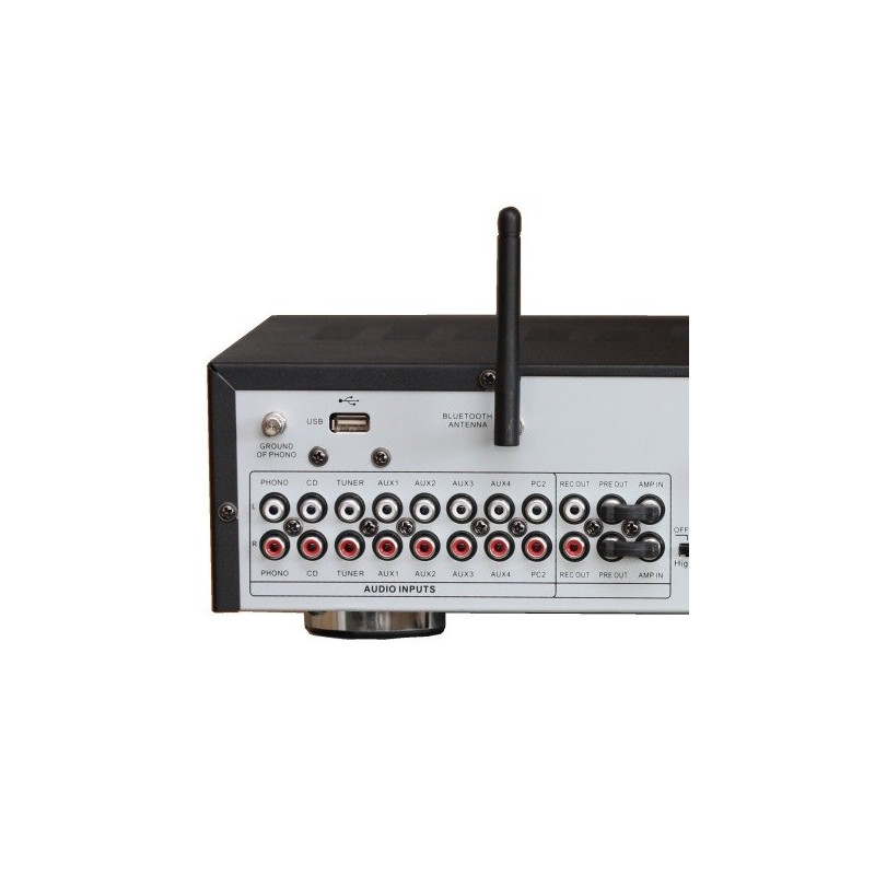 Para los usuarios de música contenida en los ordenadores, smartphones o tabletas, este amplificador ofrece un receptor Bluetooth integrado.