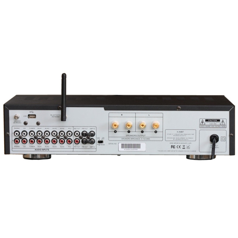 El amplificador X-i50 BT ofrece una potencia de 2 x 50 Watts RMS a 8Ω, y su modo de funcionamiento « Hi Bias » le permitirá mover fácilmente la mayoría de los altavoces del mercado.