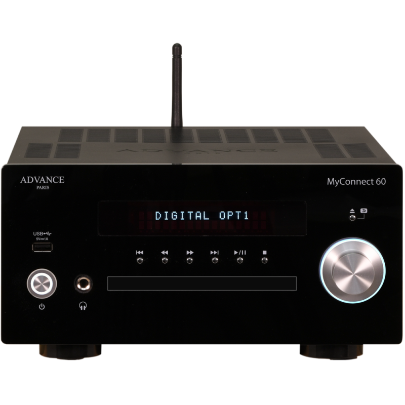 Advance Paris MyConnect60 | Todo en uno 2x60W | Reproductor Streamer, compatible con AirPlay, Tidal, Spotify, Qobuz... |Sintonizador FM/DAB+ | Reproductor CD | Lector USB | Conexión Bluetooth | Amplificación clase AB 2x60 Watios