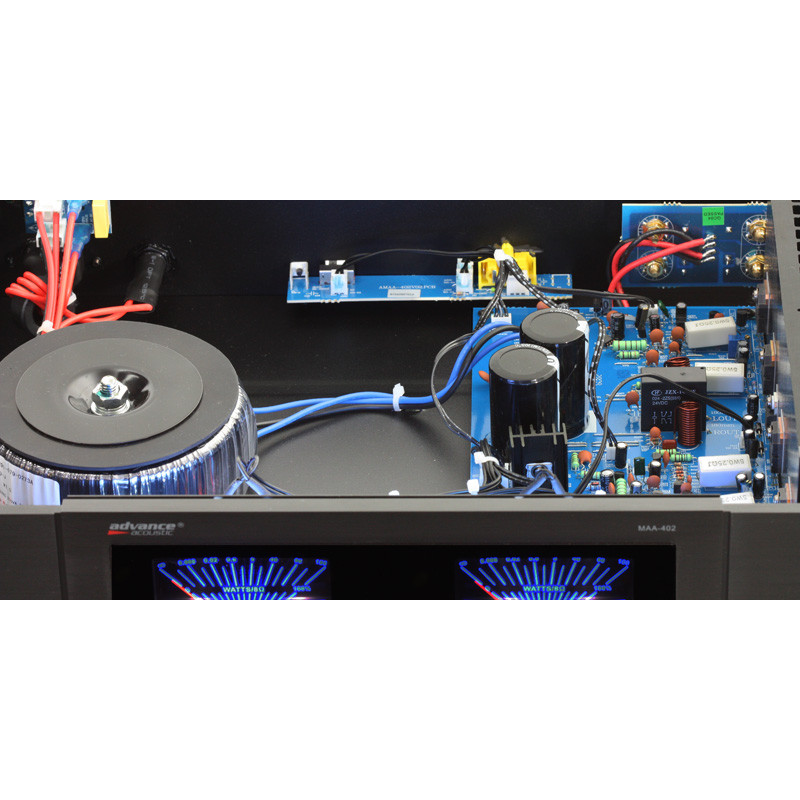The MAA 402 Power Amplifier has been conceived and realized with a lot of care and forethought. The use of an oversized toroidal transformer along with the associated “High Current” Bipolar power transistors allow the MAA 402 to provide an exceptional musical experience. This type of infrastructure gives the output a natural softness which faithfully renders music in its finest details. The use of low noise resistors and sound friendly capacitors provide a counterpoint and guarantees the highest fidelity to sound.Etapa de potencia estereo 2x70w. 2x15w en clase A. Transformador toroidal. Indicadores VU meter.