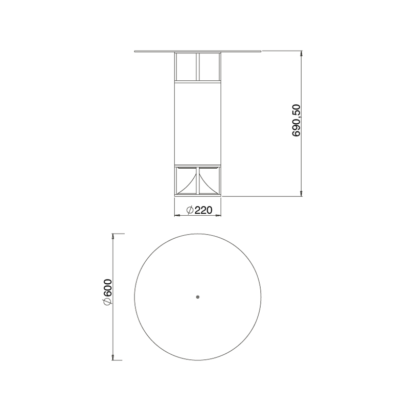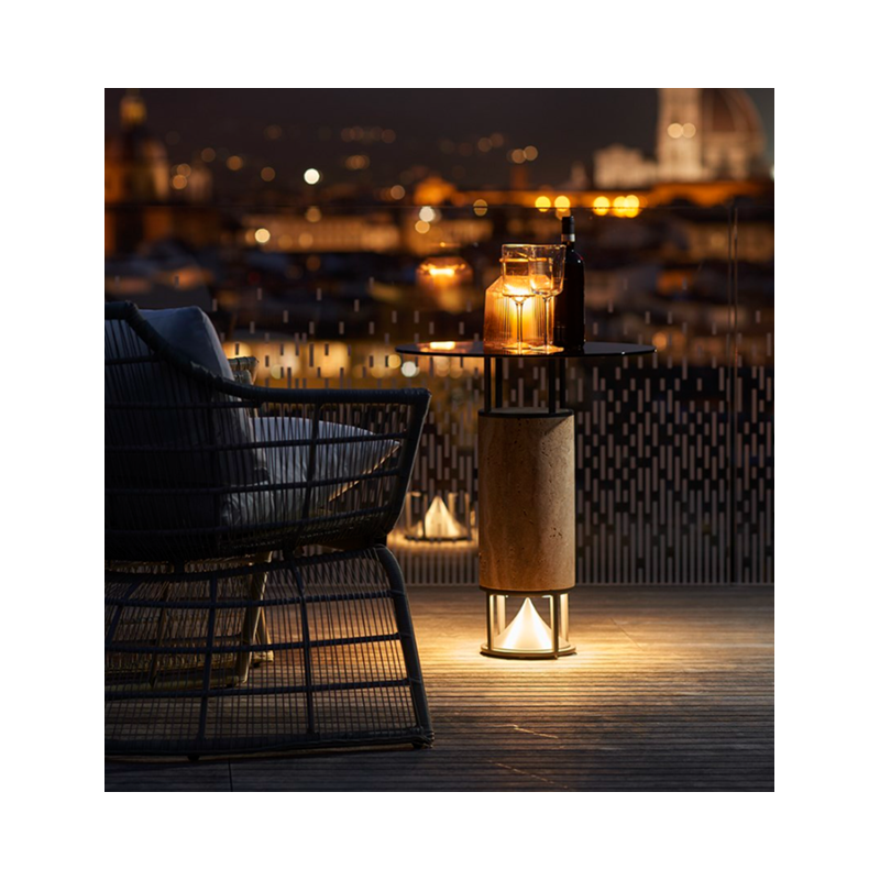 Architettura Sonora Cylinder Mesa Piedra | Altavoz 6" coaxial de 2 vías, RMS 150W | IP44 | Altura: 690mm, Diámetro base: 220mm, Diámetro mesa: 600mm | Base de aluminio pintado en negro | Mesa de cristal transparente o tintada | Tira led incluída | Plazo de entrega: 3/4 semanas