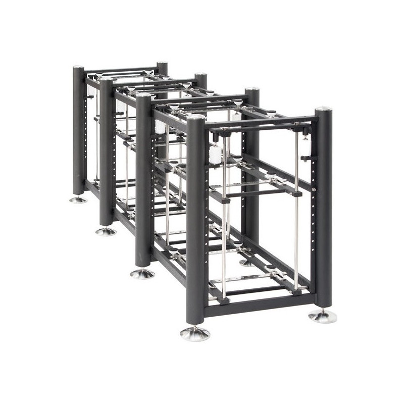 Es ́s de metal lleno de partículas especiales y elastómeros. Los montantes tienen un diámetro de 60 mm. Estos factores crean un bastidor pesado, resistente y estable. El coeficiente de resonancia de la estructura se reduce significativamente. La pintura utilizada está texturizada para fines de difusión.