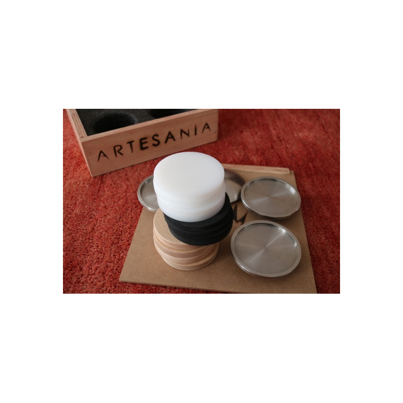 Artesania Audio Isolator Base - Diámetro 100mm | El precio incluye el juego de 4 bases de acero inoxidable, 4 puntas desacoplo, 4 bases de teflón, 4 bases de neopreno, 4 bases de madera de haya y caja