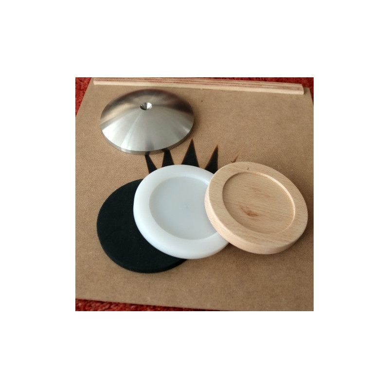Artesania Audio Isolator Base - Diámetro 60mm | El precio incluye el juego de 4 bases de acero inoxidable, 4 puntas desacoplo, 4 bases de teflón, 4 bases de neopreno, 4 bases de madera de haya y caja
