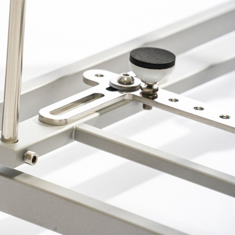 Brazos hechos de acero inoxidable antimagnético. Los brazos sostienen púas ajustables (que pueden ser ubicadas en diferentes posiciones) también soportan discos aislantes y almohadillas de amortiguación. Flexibilidad total en diferentes posiciones y fácil de cambiar. Este sistema permite establecer la mejor posición de apoyo para colocar los componentes electrónicos.