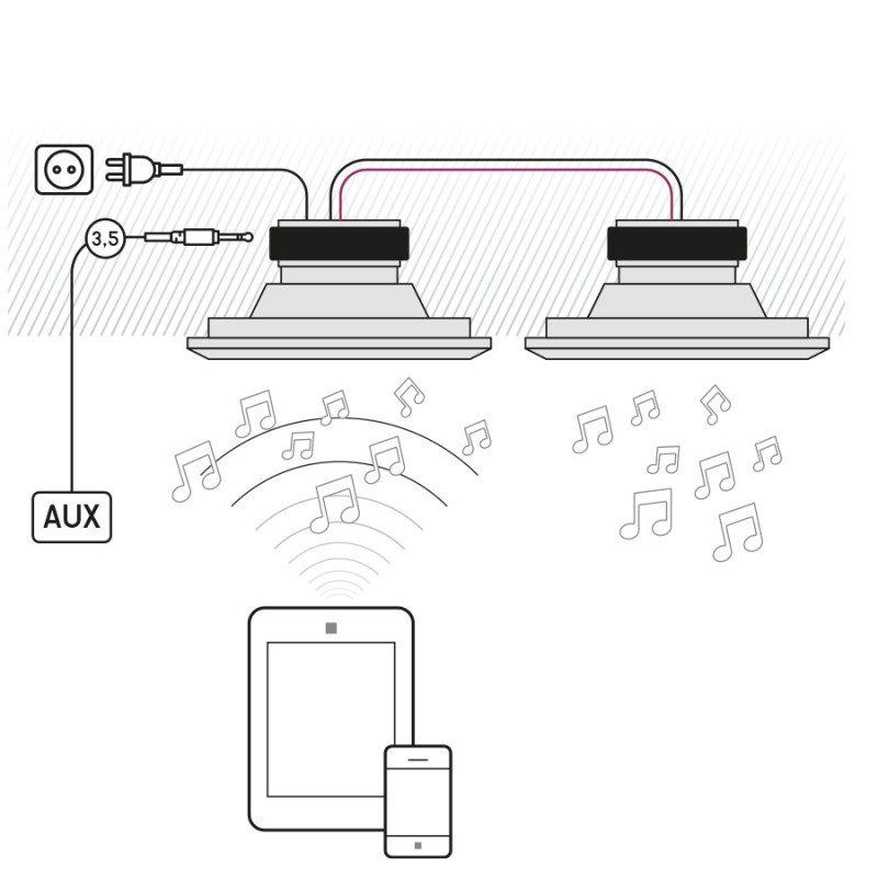 The built-in class D amplifier with Bluetooth on board provides endless enjoyment.