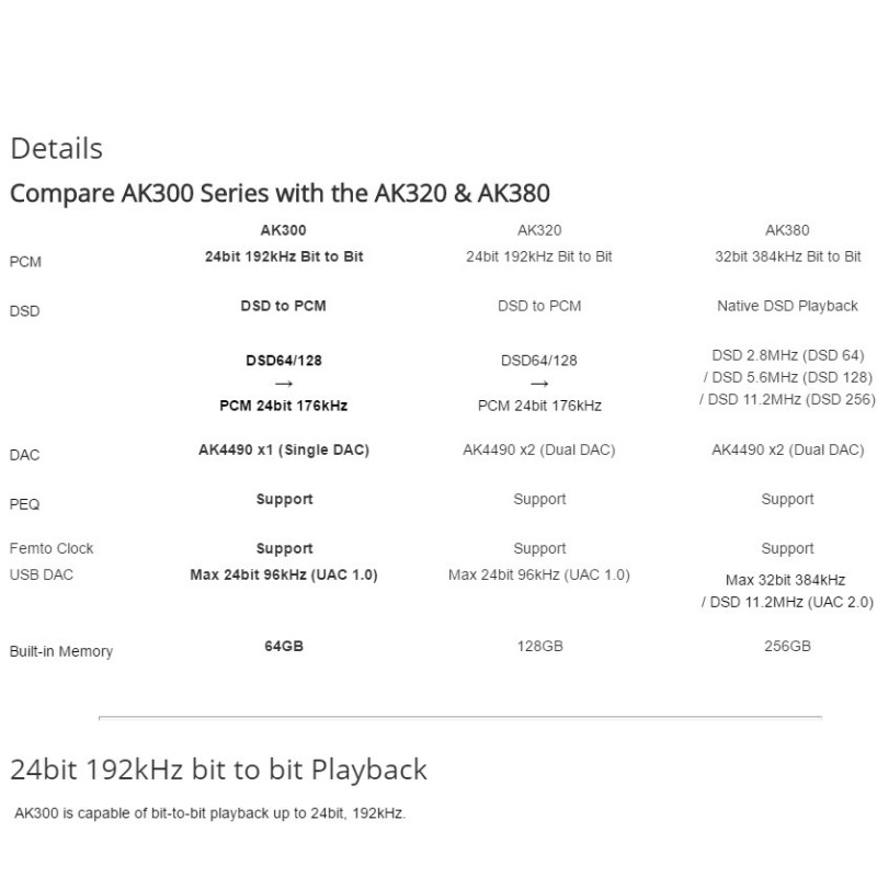 AK300 es capaz de reproducir bit a bit hasta 24 bits, 192 kHz.