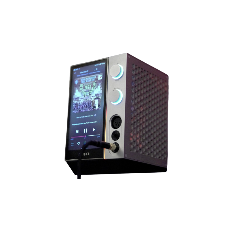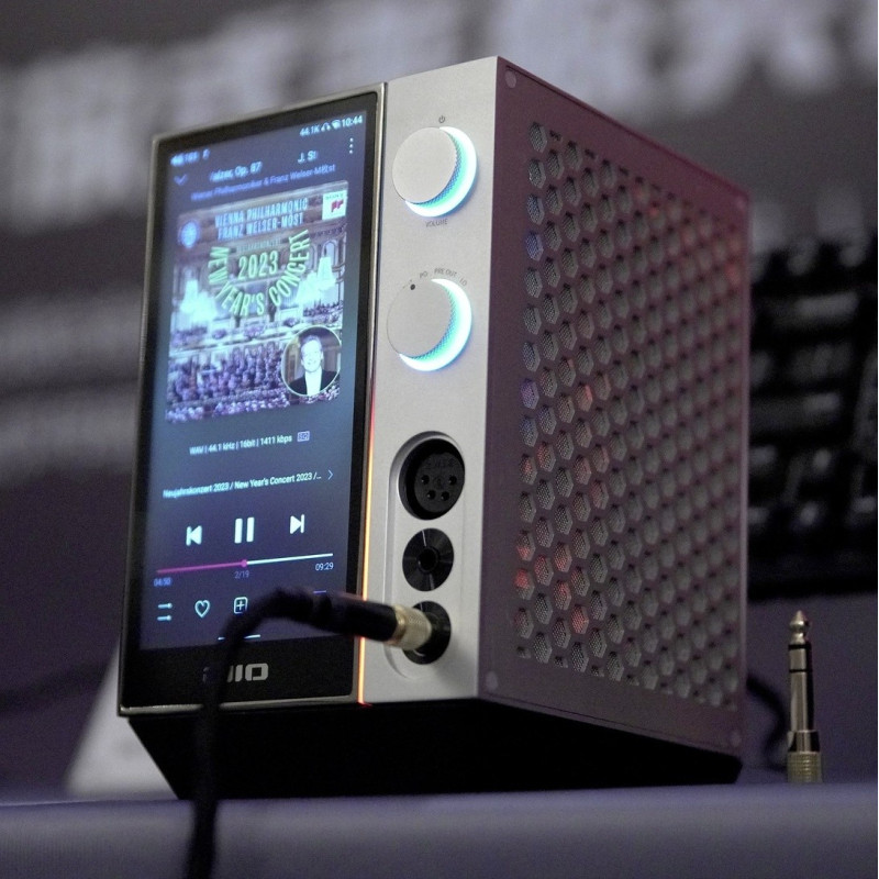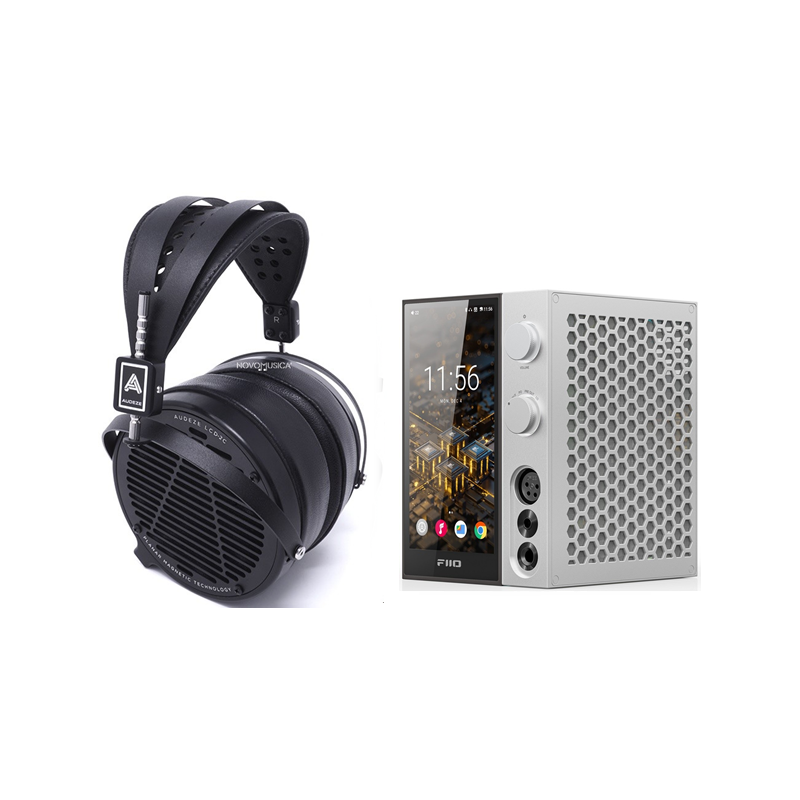 Conjunto formado por amplificador con streamer FiiO R9 y auriculares Audeze LCD2 Classic