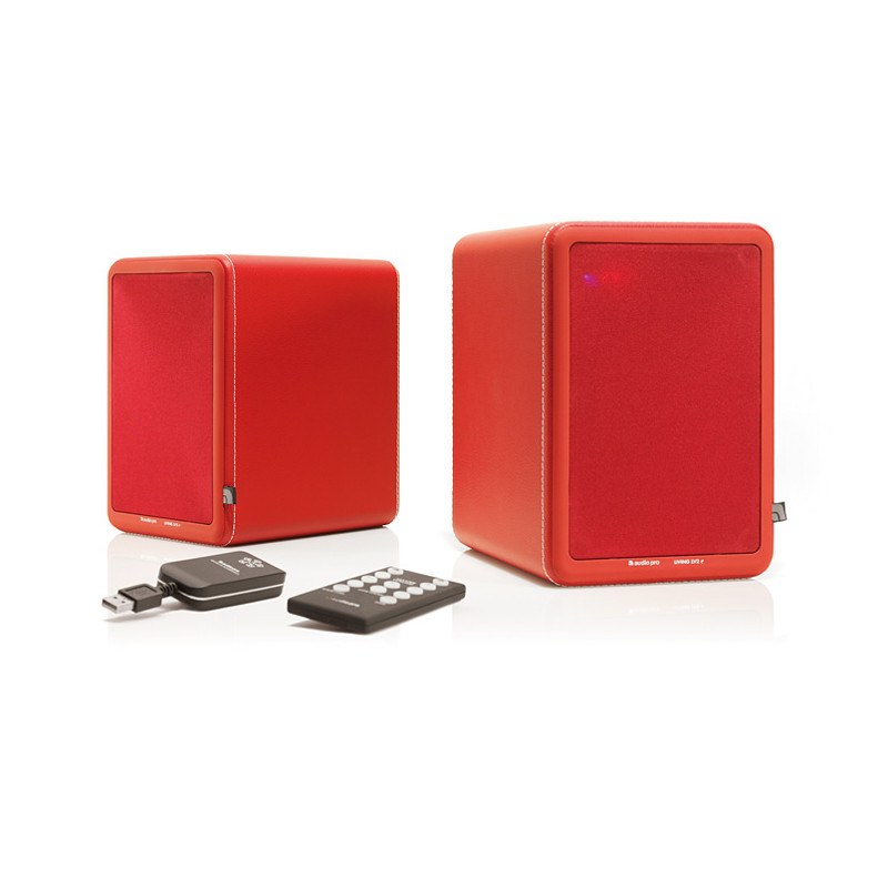 Los altavoces inalambricos AudioPro LV2e no tienen ningún cable que los una al emisor o bien entre ellos. Tan solo es necesario conectar cada uno de ellos a corriente eléctrica ya que cada uno de ellos incopora un receptor inalámbrico. auto-amplificados 2 x35 Watios, emisor WIFI incluido, receptor WIFI integrado, Mando a distancia. terminados en cuero de 3 colores