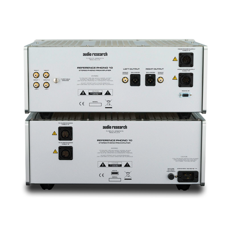 El Reference Phono 10 incorpora todo lo que sabemos sobre la reproducción de sonido e incorpora muchos de los conocimientos adquiridos en el desarrollo de los preamplificadores de línea Reference Aniversary y Reference 10. El Reference Phono 10 es un verdadero diseño de doble monofónico con trayectorias de señal totalmente separadas para cada canal, desde la fuente de alimentación de doble monofónico hacia adelante. Hay transformadores de alto y bajo voltaje separados para cada canal, y suficiente almacenamiento de energía para un amplificador serio, el doble de la capacidad de un Reference Phono 2, lo que proporciona un headroom dinámico increíble. Hay veinte etapas de regulación electrónica, con regulación de tubo de vacío separada para cada canal. Los cordones umbilicales dobles se conectan entre la fuente de alimentación y la etapa analógica separada. La entrada del cable de alimentación contiene un conector IEC de 20A.