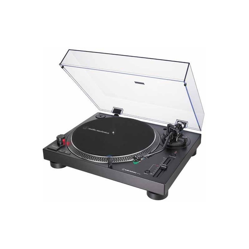 La nueva versión del AT-LP120XUSB incorpora las ventajas de la tecnología inalámbrica Bluetooth V 5.0 para permitir reproducir los vinilos en cualquier tipo de dispositivos Bluetooth compatibles como altavoces activos, auriculares y equipos HiFi compatibles, incluso conectarse a dispositivos que admitan el códec aptX, que ofrece una calidad de sonido mucho mayor que el códec SBC estándar, convirtiendo este giradiscos en un modelo completo con todo tipo de conectividad. Al igual que el AT-LP120XUSB, este giradiscos dispone de un motor de tracción directa servocontrolado de CC, junto con un control antiskating dinámico ajustable y un preamplificador fono seleccionable.