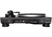 El brazo en forma de J del LP5, que ayuda a minimizar los errores de seguimiento, se basa en los diseños originales de Audio-Technica de los años 60 y 70. Velocidades de 33 1/3 y 45 RPM, salidas estéreo fono o línea con toma de tierra independiente, un chasis de estructura ponderada y baja resonancia, un grueso patinador de 5 mm fabricado en compuesto de goma y un elegante acabado en pintura negra mate, completan un paquete excepcional.