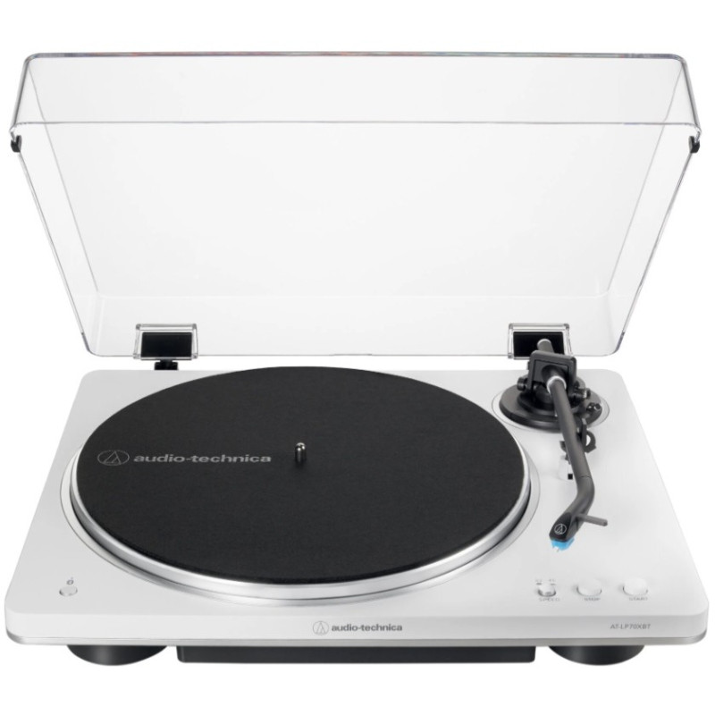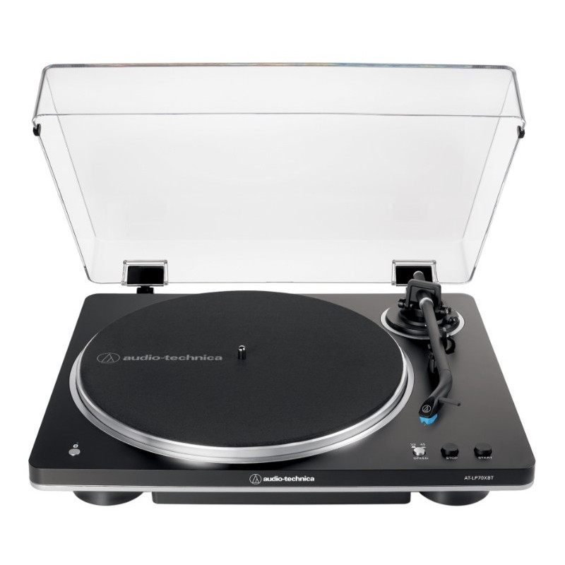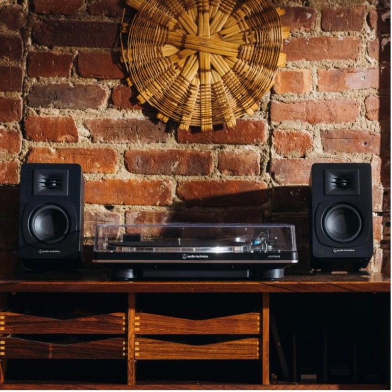 Conjunto formado por tocadiscos Audio Technica AT-LP70XBT y altavoces activos Audio Technica AT-SP3X
