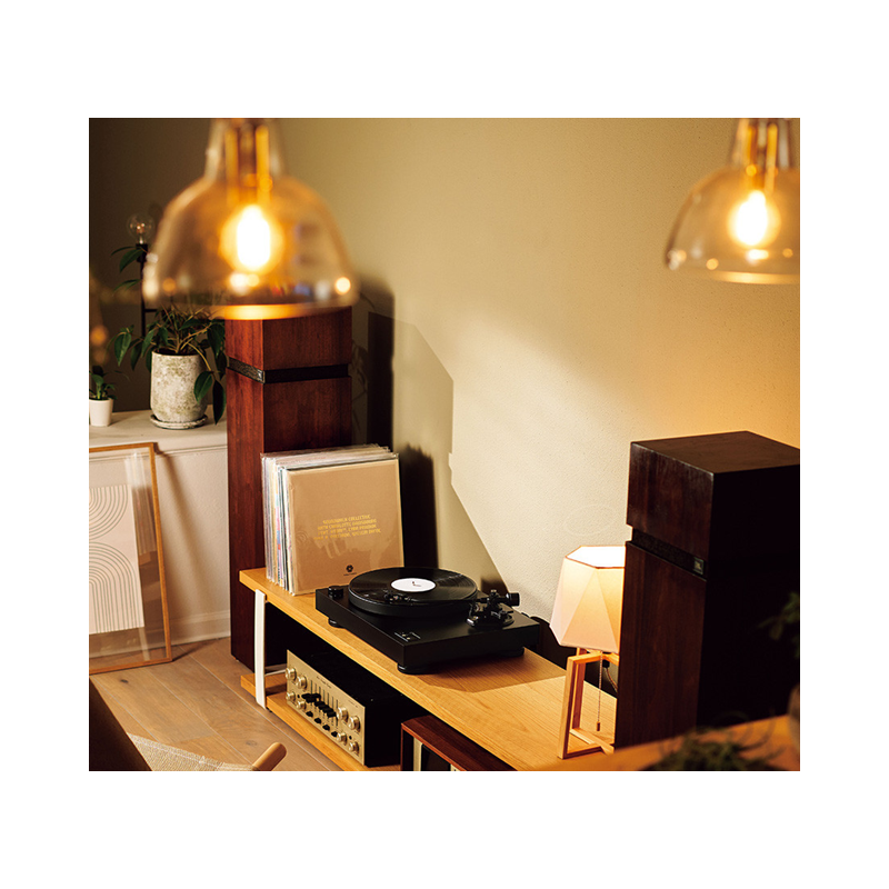 La robusta base en MDF del giradiscos, los pies ajustables, la gruesa bandeja de aluminio fundido con amortiguación de goma y antirresonancia, y la alfombrilla de goma de 2,5 mm actúan conjuntamente para atenuar el ruido y las vibraciones no deseados, para que puedas disfrutar de la música con todo detalle.