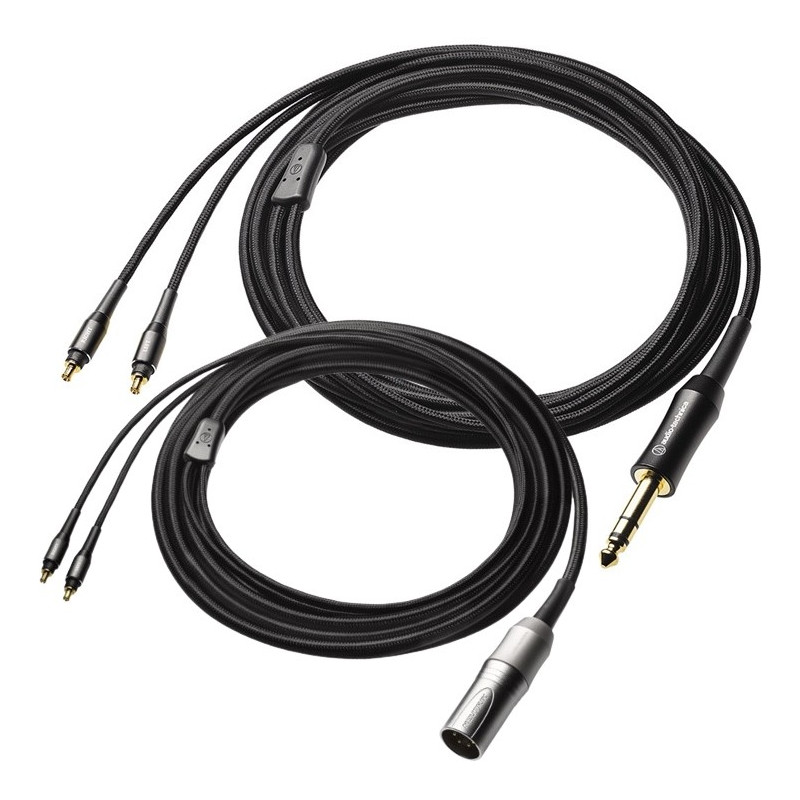 Los auriculares están equipados con entradas A2DC (Audio Designed Detachable Coaxial) para una conexión segura con los dos cables desconectables de 3,0 m (9,8') incluidos. Uno de los cables está dotado de una clavija estéreo chapada en oro de 6,3 mm (1/4") para su uso con equipos de audio estándar. El otro cable presenta un conector balanceado XLR-M de 4 pines para su uso con los últimos equipos de alta fidelidad, que ofrece una separación de canales mejorada para realzar la experiencia sonora.