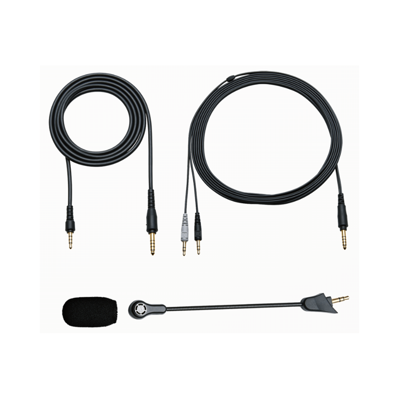 - Dos cables desmontables: cable de 3.0 m (9.8 ') con conectores de micrófono y auriculares de 3.5 mm (1/8 ") para computadoras; cable de 1.2 m (3.9') con conector TRRS de 3.5 mm (1/8") para PS5, Xbox Series X y otras consolas de videojuegos