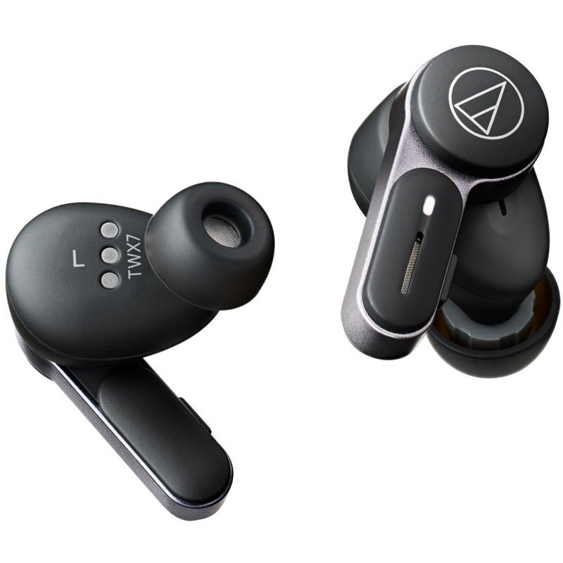 Audio Technica ATH-TWX7 Auriculares Bluetooth | Con aproximadamente 6,5 horas de reproducción y hasta 20 horas con el estuche de carga | IPX4 resistente al agua y sudor | cancelación de ruido híbrida digital | transductores de alta resolución de 5,8 mm,