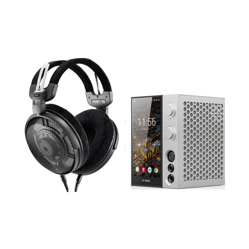 Conjunto formado por amplificador con streamer FiiO R9 y auriculares Audio Technica ATH-ADX3000