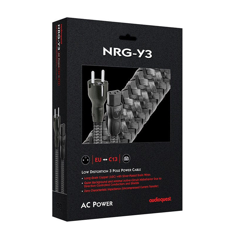 AudioQuest NRG Y3 Cable de alimentación - Cable de alimentación de 3 polos de baja distorsión NRG-Y3 (15 amperios US). Cobre de grano largo (LGC) con alambres de drenaje plateados
