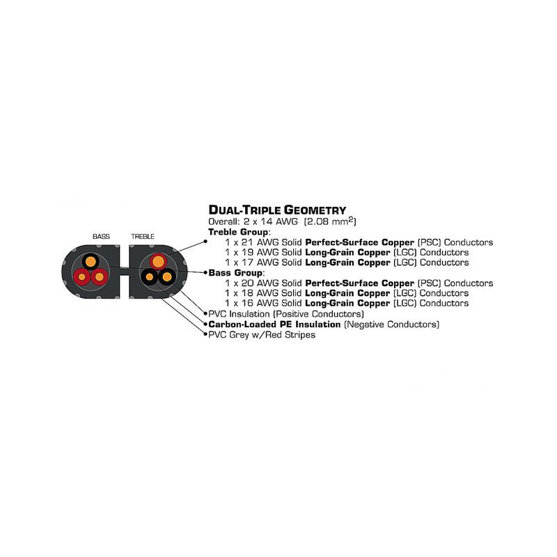 Este cable utiliza una cuidadosa combinación de Cobre de Grano Largo (LGC) y Cobre de Superficie Perfecta (PSC) de altísima pureza. El LGC tiene menos óxidos dentro del material conductor, menos impurezas, menos límites de grano y definitivamente mejor rendimiento. La asombrosa suavidad y pureza del PSC elimina aún más la aspereza y aumenta enormemente la claridad.