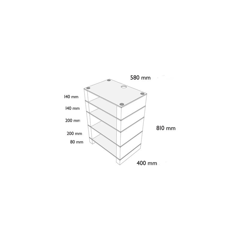 Stax 810 Mueble HI-FI de 5 estantes | Guía de cables integrada | 40 kg de capacidad por estantería | Ancho útil de cada balda -> 46cm | Niveladores de altura | 81cm alto