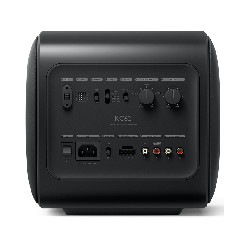 Las opciones de conexión del KC62 le permiten ser utilizado con casi cualquier sistema de audio, con KEF SmartConnect y entradas de nivel de altavoz que eliminan cualquier problema de conexión. La salida de línea con HPF permite una integración excepcional y ajustada, y el KC62 también es compatible con el KW1 para una compatibilidad inalámbrica sencilla.