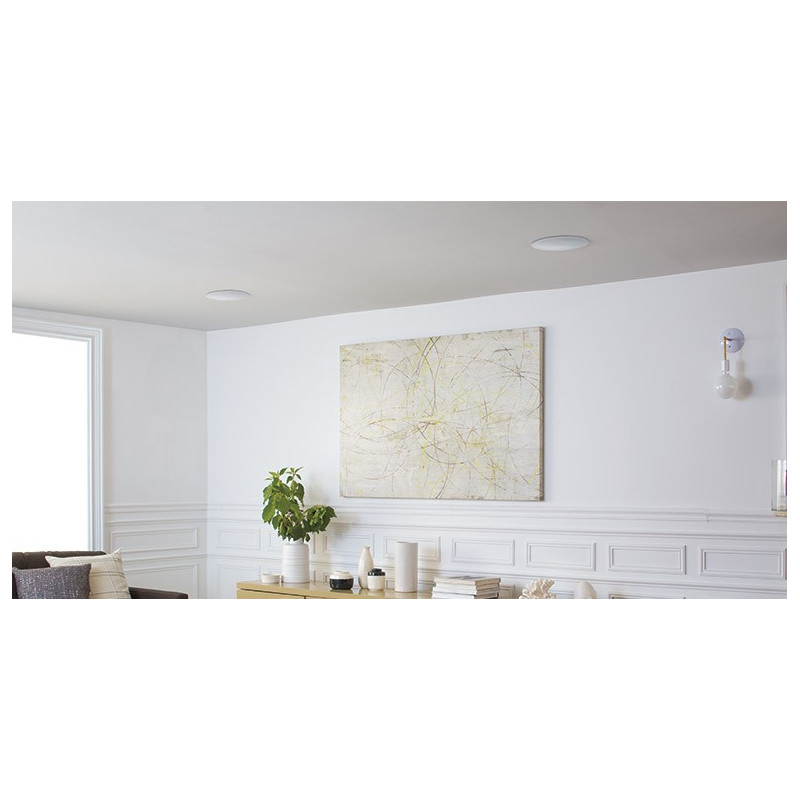 Altavoz para empotrar en techo . Ideal para aplicaciones de sistemas de audio virtualmente invisibles con máxima calidad de sondido . Incluye tecnología stereo Everywhere. Sencilla instalación. Sus abrazaderas se fijan al techo y su rejilla se encaja mediante imanes . Incluye 2 tweeter de 2,54cm y un woofer de 17,8cm. Excelente respuesta en graves.