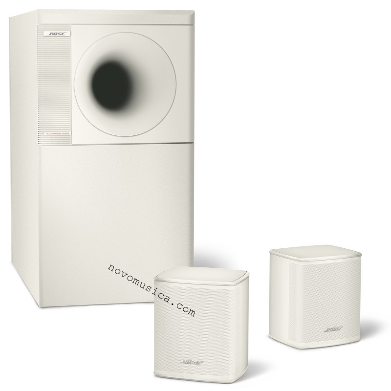Bose Acoustimass 3 serie 5. Si lo que usted está buscando son unos altavoces pequeños, con sonido de altavoces grandes y su habitación no es muy grande, unos 12 a 18m2, este sistema de Bose es la mejor solución que puede encontrar. Los pequeños cubos de la nueva serie V son un poco más pequeños que los anteriores cubos. Mejoran también la dispersión del sonido, respecto a la anterior serie. Es la mejor solución que hay en el mercado para escuchar bien la música sin interferencias estéticas. No son unos altavoces para audiófilos, de entrada separan físicamente las frecuencias medias y agudas de las frecuencias graves, ya que utilizan recintos diferentes para ellas, pero sin lugar a dudas el resultado final es optimo.