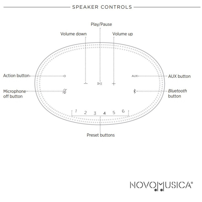 El control no se limita a la voz. Puede tocar los controles superiores para reproducir, pausar o saltar pistas, o administrarlo todo desde la aplicación Bose Music. Además, puedes configurar hasta seis presintonías diferentes para listas de reproducción, emisoras de radio por Internet y mucho más, para que tus favoritos estén a sólo un toque de distancia.