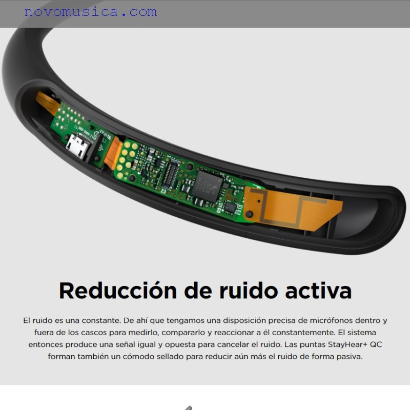 El ruido es una constante. De ahí que tengamos una disposición precisa de micrófonos dentro y fuera de los cascos para medirlo, compararlo y reaccionar a él constantemente. El sistema entonces produce una señal igual y opuesta para cancelar el ruido. Las puntas StayHear+ QC forman también un cómodo sellado para reducir aún más el ruido de forma pasiva