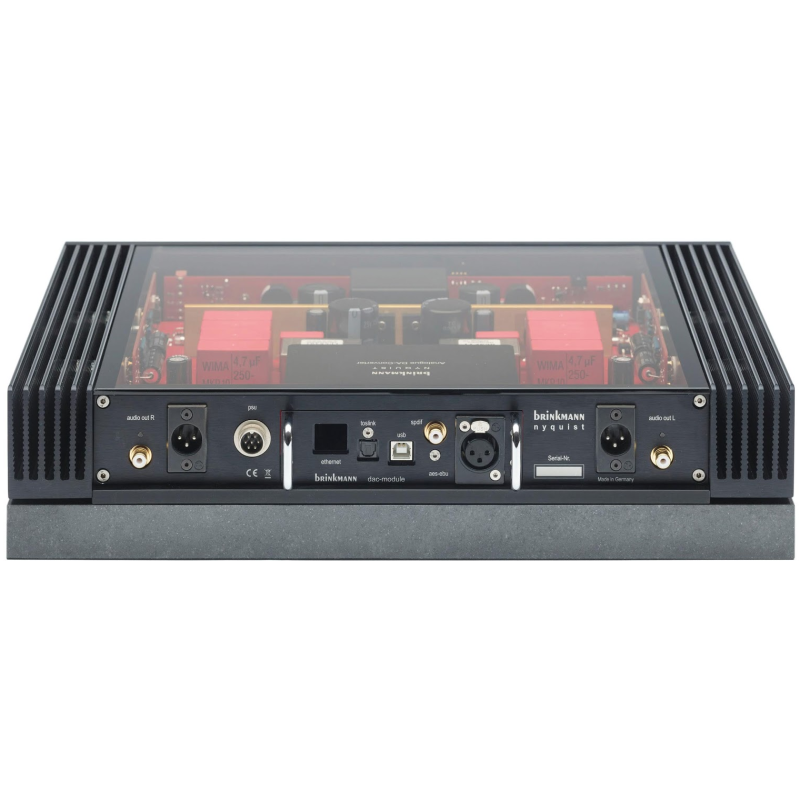 El Nyquist MKII es el primer fruto de la concepción nodular de su predecesor, el celebrado Nyquist, con un diseño completamente renovado para acomodar los formatos digitales de audio más recientes, entre ellos el MQA (“Master Quality Authenticated”), el PCM hasta 32 bits/384 kHz (DXD incluido) y el DSD nativo hasta DSD256. Por otro lado, el uso de una nueva fuente de alimentación de alta tensión, única en un producto de esta clase, permite obtener mejoras sustanciales en las prestaciones de la circuitería digital. Así, contrariamente a la versión original del Nyquist, donde sólo un circuito de regulación de potencia se beneficiaba de esta tecnología, en el MKII son seis los circuitos de regulación que la utilizan. Y es que el módulo digital del nuevo “streamer” de Brinkmann incluye una sección de alimentación completamente actualizada, que incorpora 12 circuitos de regulación contra los 11 de su predecesor. En concreto, el regulador adicional permite mejorar todavía más el desacoplo entre el reloj de sincronismo del DAC y el resto de la circuitería, reduciéndose de este modo el nivel de “jitter”, en especial durante la reproducción de contenidos vía USB y Ethernet. El resultado de las mejoras incorporadas en la versión MkII del Nyquist se percibe en la forma de una resolución incluso mayor, sin que ello comporte ninguna pérdida en la extraordinaria musicalidad que tanto éxito proporcionó al modelo original.