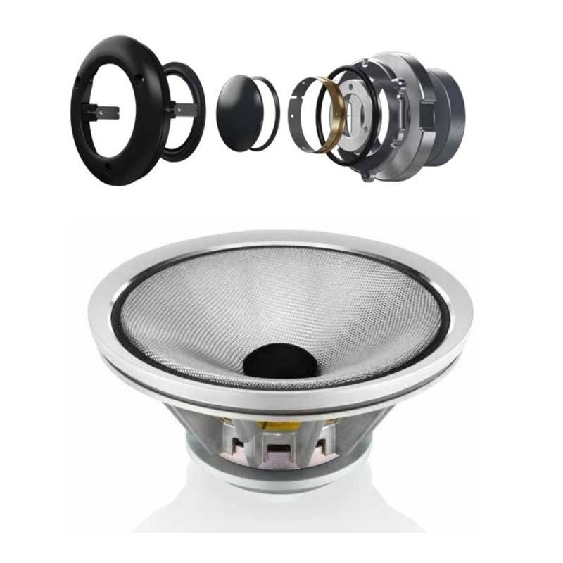 Los tres modelos de suelo incorporan un altavoz/drivers de medios cuyo chasis antes era de Zinc y ahora se han empleado un material mucho más rígido como el aluminio. Se trata por tanto de un chasis optimizado que ha visto incrementada la rigidez y la eliminación de resonancias no deseadas. El aluminio consigue también una excelente disipación del calor, resultando en un chasis más aireado. Además del aluminio empleado, se ha diseñado un amortizador de masa situado en la parte frontal del chasis, atenuando todavía más la resonancia de la estructura resultando en un diseño prácticamente inerte. Así se consiguen unos medios más limpios y claros.
