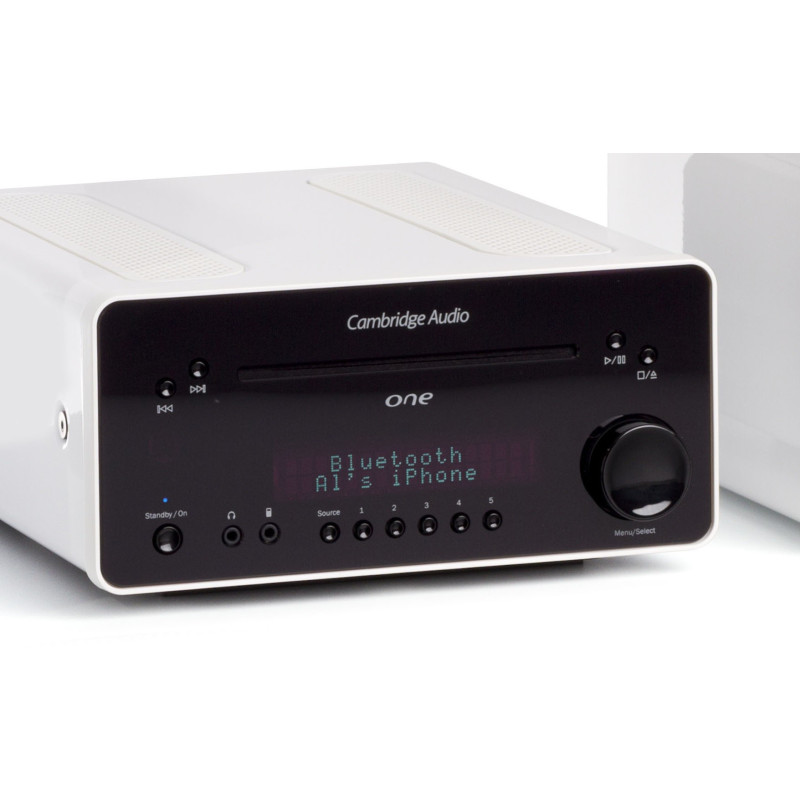 A todos nos gusta reproducir nuestra música a través de un gran número de fuentes de sonido como, por ejemplo, CD, discos duros de sistemas informáticos, servicios de streaming en línea y radio DAB. Sin embargo, para reproducir audio a través de todas estas fuentes de sonido con una calidad de alta fidelidad normalmente es preciso conectar varios dispositivos con distintas funciones: un reproductor de CD, un DAC, un sintonizador, un amplificador, etc. One de Cambridge Audio hace que esa variedad de dispositivos no sea necesaria: es un sistema musical compacto e integral que ofrece una increíble calidad de sonido de alta fidelidad.