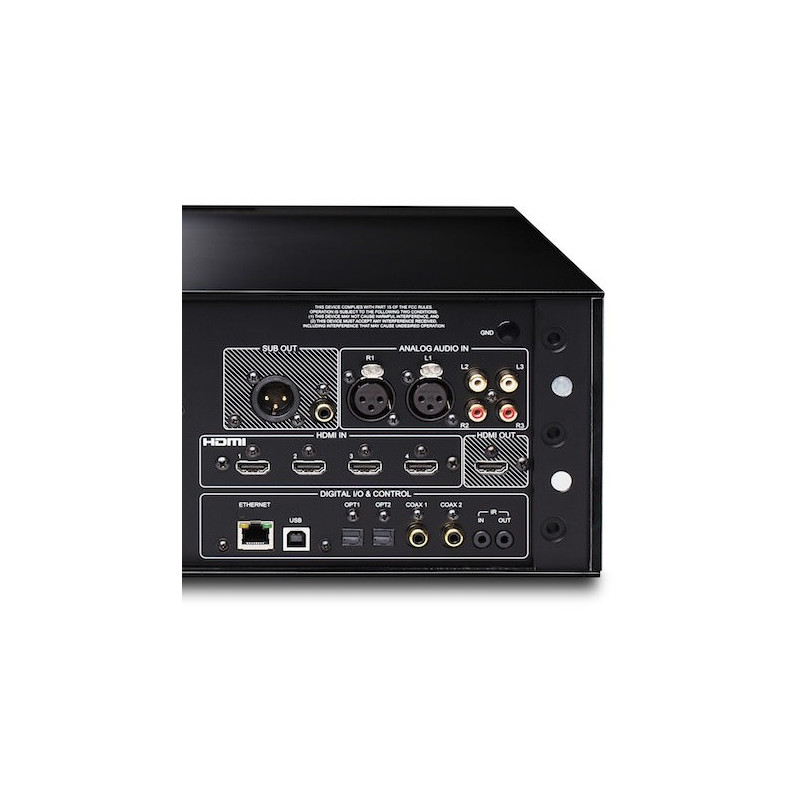 Entradas XLR, RCA analógicas con opción MM/MC phono, digital coaxiales y ópticas.