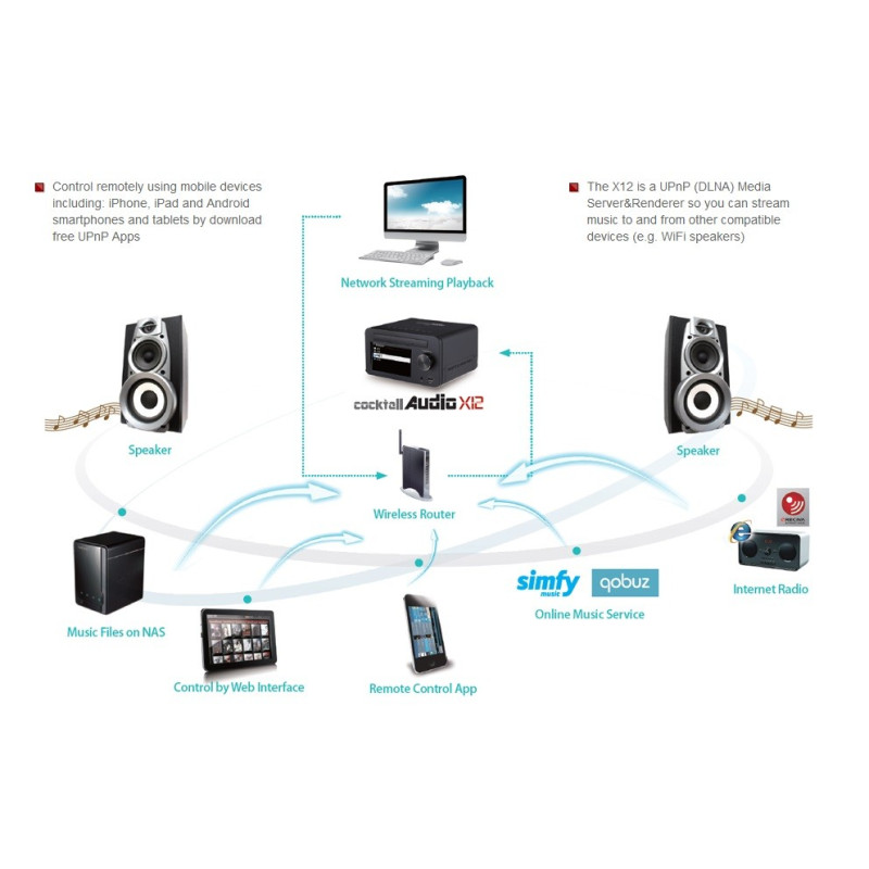 | Interface | Remote control, PC, iOS & Android devices with customized Web Interface (WUI) or various free UPnP Tablet & Smartphone Apps | |||