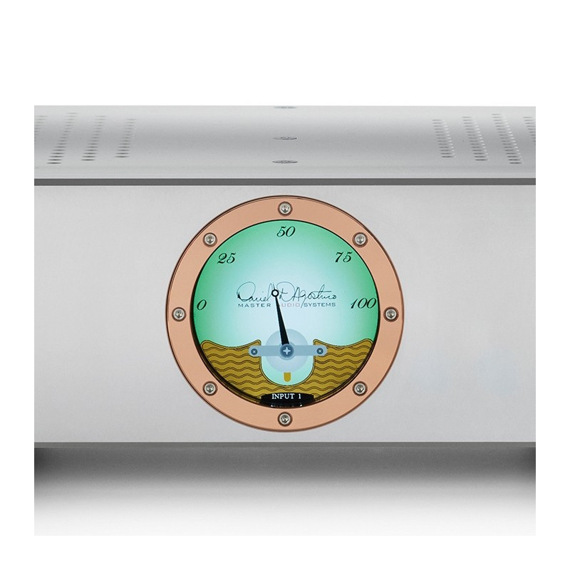 Un elegante amplificador integrado estereofónico de muy altas prestaciones que se beneficia de las innovaciones incorporadas en sus hermanas mayores para proporcionar sonido genuinamente High End por un precio más comedido. Así, en su corazón encontramos una circuitería de entrada con transistores JFET basada en la del reputado Momentum C4 Preamplifier, cuya topología ha sido meticulosamente rediseñada con el objeto de ofrecer unos niveles de precisión tonal sin precedentes. Acompaña a esta circuitería uno de los elementos característicos en las realizaciones firmadas por D’Agostino Master Audio Systems: una opulenta fuente de alimentación que combina un transformador toroidal de 750 VA hecho a medida con un banco de condensadores que suman un total de 25.000 uF. Gracias a ello, el Pendulum Integrated Amplifier exhibe unos registros sonoros extraordinariamente estables minimizando a la vez la distorsión, siendo el resultado una capacidad dinámica excepcional incluso con cajas acústicas particularmente “difíciles”. El Pendulum Integrated Amplifier se completa con un elegante mando a distancia por Bluetooth fabricado en Delrin y una construcción completamente metálica presidida por uno de los icónicos indicadores visualizadores analógicos de D’Agostino Master Audio Systems.