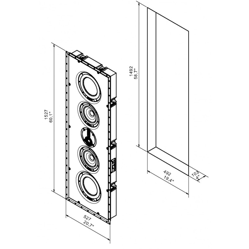 Dali Phantom S280 | Tweeter híbrido con woofer de 8 pulgadas y pasivo de 10 | Corte en pared 1492 x 492 x103mm | Precio Unitario
