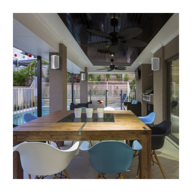El diseño totalmente sellado ofrece el sonido de un altavoz de interiores para disfrutar al exterior.