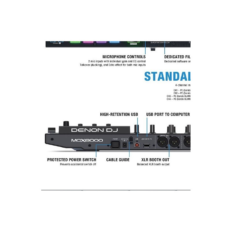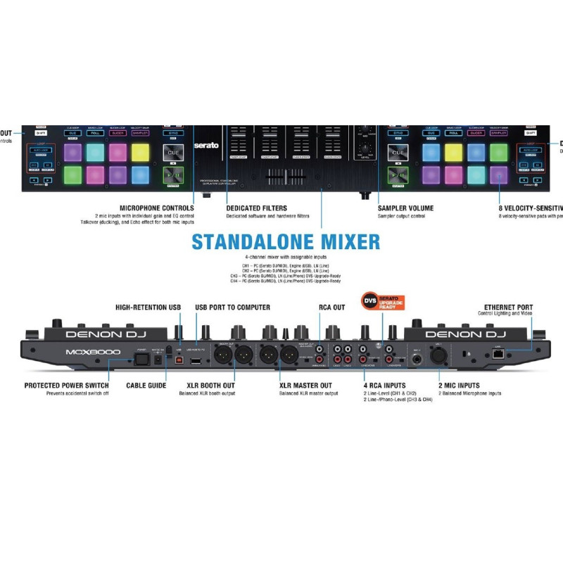 El MCX8000 es el único reproductor multimedia / controlador que tiene su propio software e interfaces integrado a la perfección con Serato DJ. Nos propulsar el DJ en la próxima generación de la tecnología independiente de alto rendimiento (motor) con pantallas de alta definición, ejecutar simultáneamente Serato DJ, y una de 24 bits de grado profesional sólida mezclador de 4 canales que te hace ilimitadas