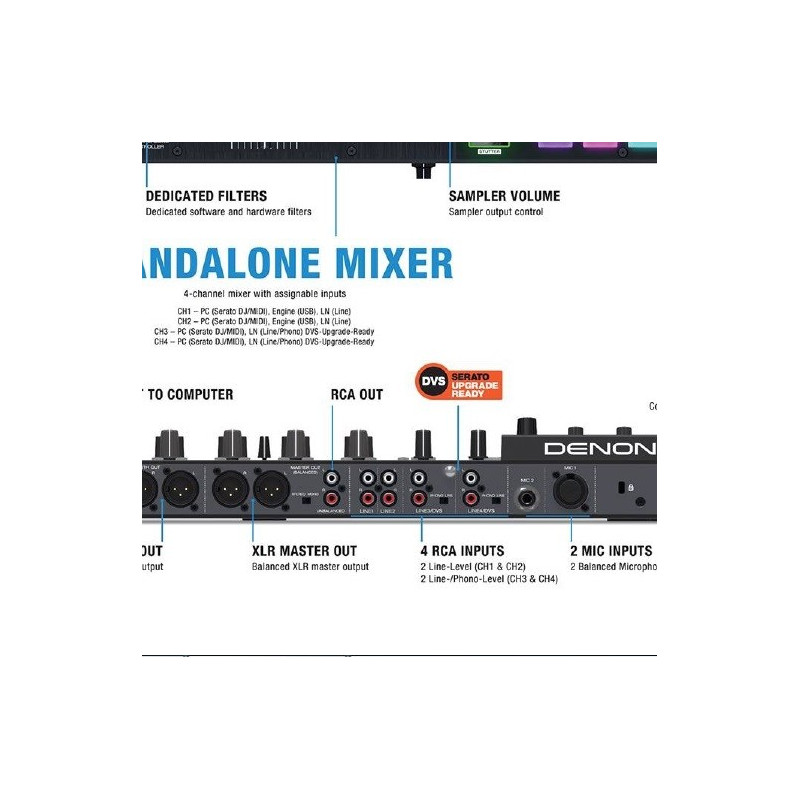 Usted tiene la ventaja de tener lo mejor de ambos mundos, ya que el MCX8000 es compatible con la última versión del software Serato DJ y le permite utilizar 4 canales. También hay un paquete de actualización DVS, dando a las posibilidades ilimitadas MCX8000.