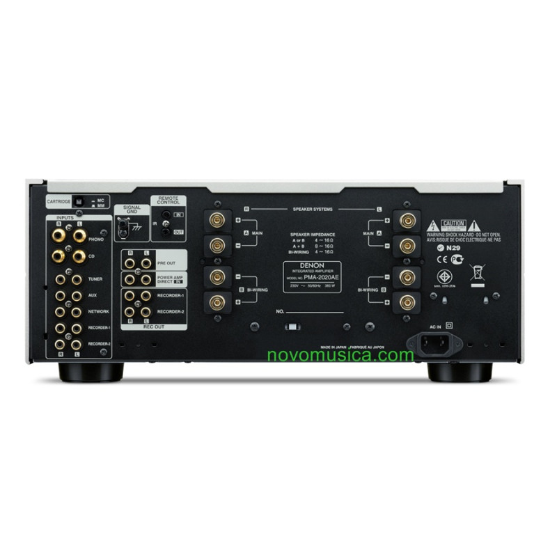 Para los amantes del vinilo y lo analógico, el amplificador estéreo Denon PMA2020AE viene con un previo de phono apto para cápsulas MM y MC. A los que se suman otras 6 entradas analógicas estéreo 2 RCA, así como dos salidas PREOUT por si queremos conectar a una pletina de cassette o algún grabador. Los nombres que tienen estas entradas en el frontal son: Recorder 1, Recorder 2, Phono, CD, Tuner, AUX y por último Network.