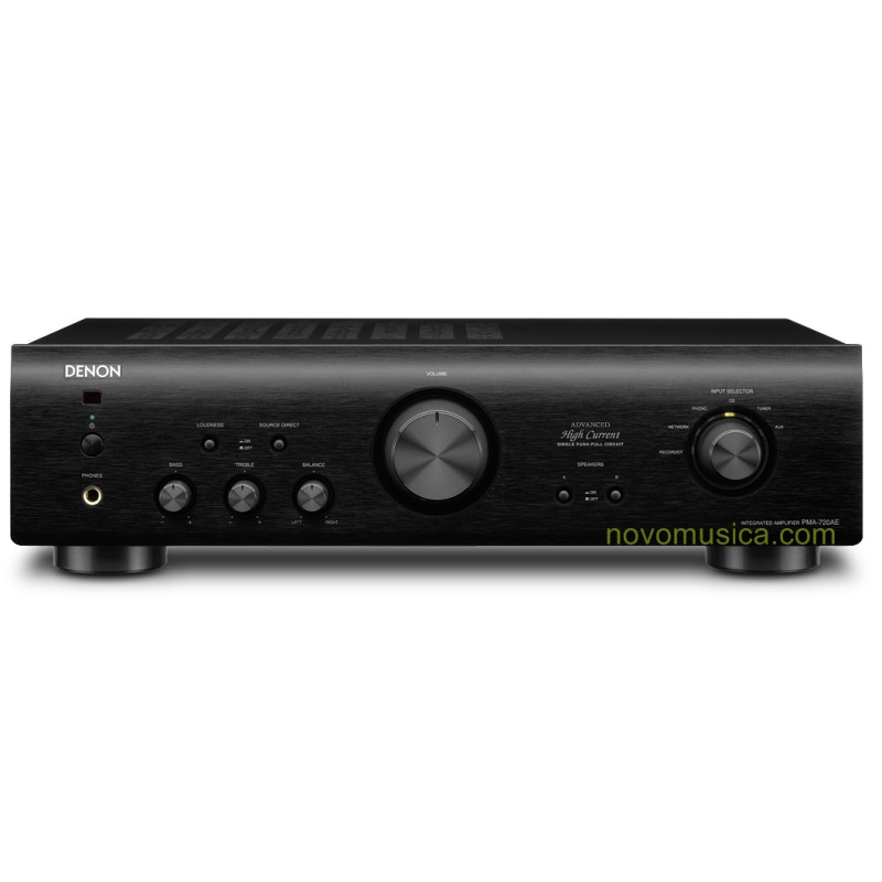 Nueva generación de amplificadores estéreo Denon PMA720. Amplificador con una potencia RMS de 85 Watios a 4 Ohmios y de 70 Watios en 8 Ohmios que incluye una nueva fuente de alimentación sobredimensionada así como circuitos de señal. Los circuitos de señal se ha intentado que sean lo más cortos posibles para no perder calidad. Estamos ante el modelo superior del amplifcador Denon PMA520.