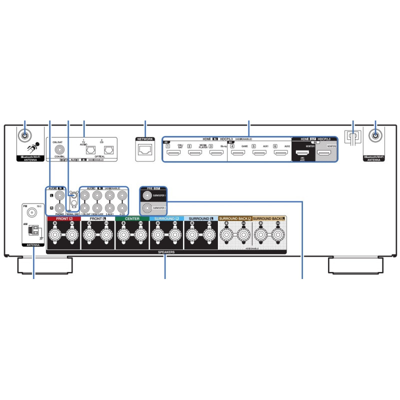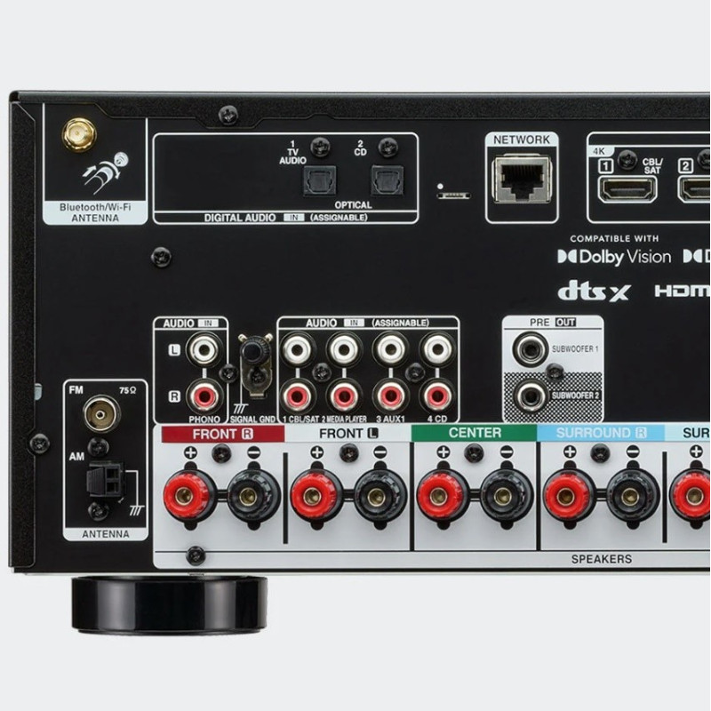 Con amplificadores de potencia discretos de alto rendimiento en todos los canales, esta unidad potencia 90 W por canal (8 Ω/ohmios, 20 Hz - 20 kHz, T.H.D.: 0,08 %, con 2 canales accionados).