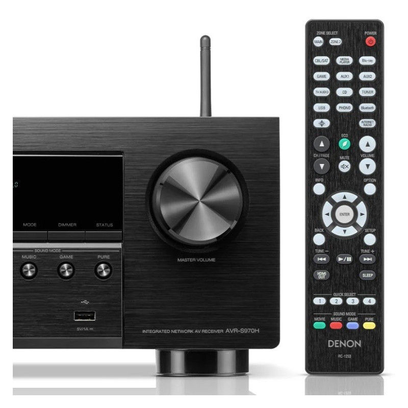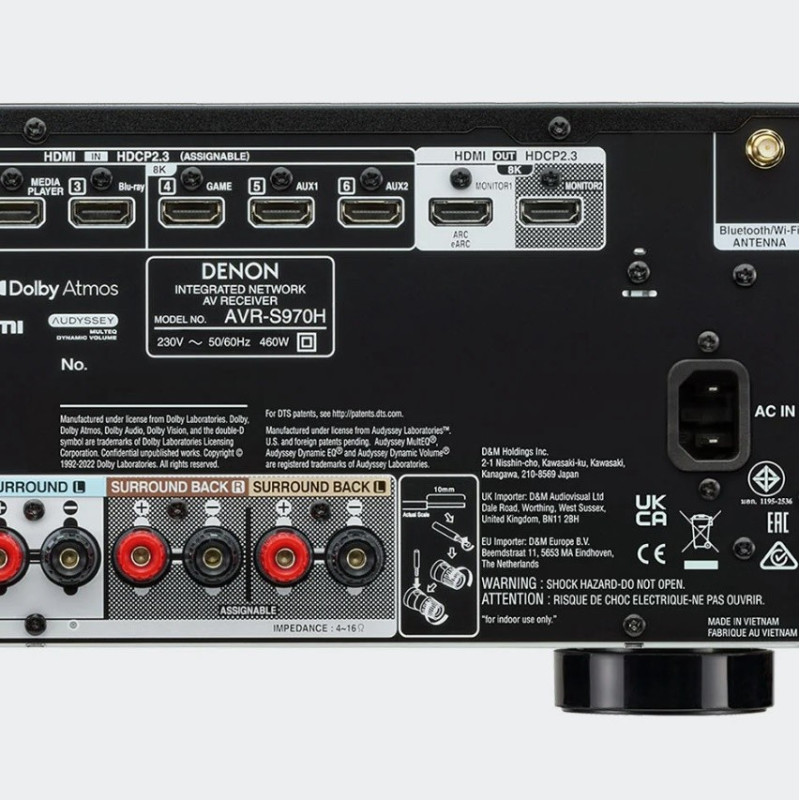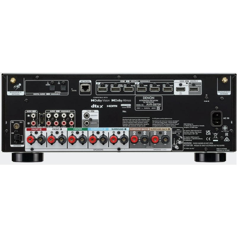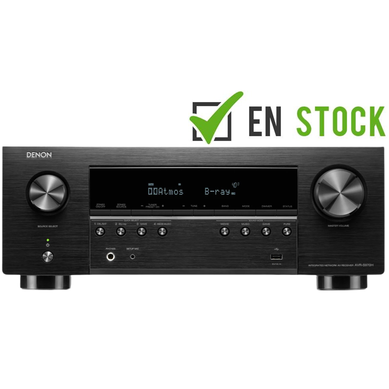 Denon AVR-S970H - Amplificador Cine en Casa Sonido envolvente de 7.2 canales -> 7.2 y sistema 5.2.2 - 90 Watios, Dolby Atmos y DTS:X | HEOS integrado, con WiFi y Bluetooth de 2 vías | Corrección de sala Audyssey | Mayor conectividad HDMI 2.1 con tres entradas 8K (6/2 entradas/salidas HDMI en total)