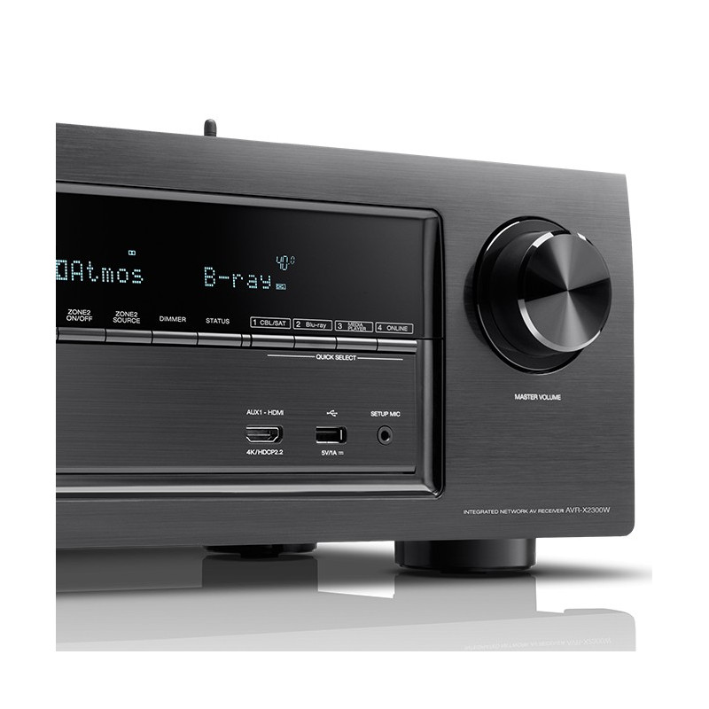 revolucionario que se encuentra en las salas de cine de primera calidad, con la capacidad de crear un campo de sonido envolvente en la parte superior de la habitación que expande drásticamente el espacio sonoro. Y, a través de una futura actualización de firmware, el AVR-X2300W será capaz de decodificar DTS: X que también ofrece un sonido en 3 dimensiones súper espectacular. Preparado para el futuro. El AVR-X2300W cuenta con un sistema de procesamiento de vídeo avanzado que procesa la señal de video en 4K Ultra HD, y es compatible con 3D. El AVR-X2300W también es compatible con HDCP 2.2, un requisito para los contenidos en 4K. La conectividad inalámbrica total es proporcionada tanto por Wi-Fi como por Bluetooth, con antenas duales que ayudan a asegurar la transmisión y recepción de señal. Reproduce tu música favorita a través de AirPlay, Spotify Connect o unidades de almacenamiento de la red local, y disfrutar de un fácil control a través de las App para iOS y Android.
