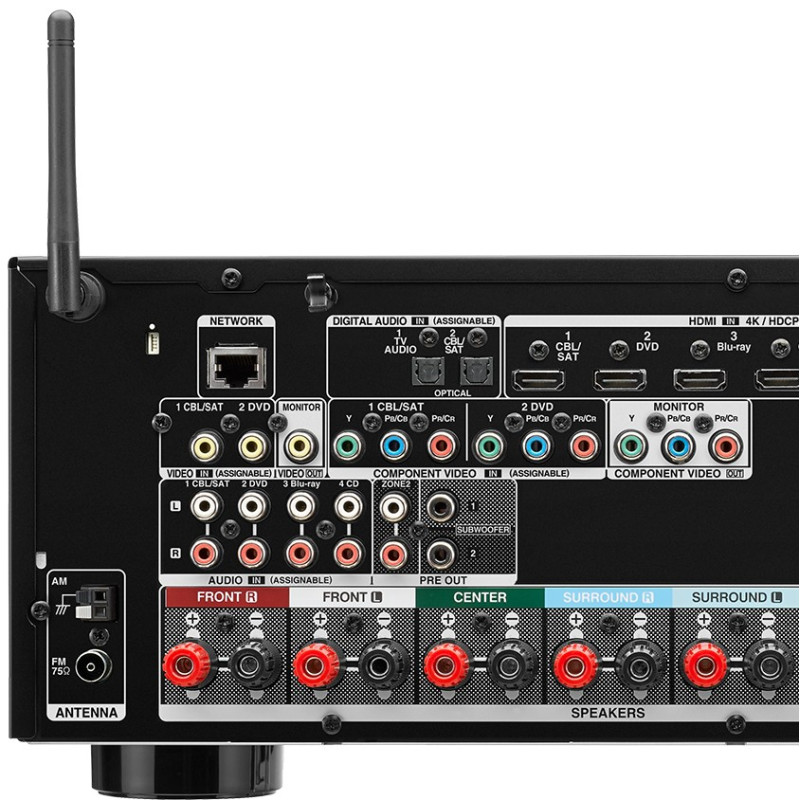 El AVR-X2300W cuenta con salidas de subwoofer dual, que le permite conectar dos subwoofers más pequeños en lugar de un solo sub grande, y disfrutar de los beneficios de un promedio de respuesta por tener dos subwoofers en diferentes lugares de la habitación. Con dos subwoofers obtendrá bajos más profundos, lo que minimiza los picos y valles que a menudo resultan con una sola configuración de subwoofer.