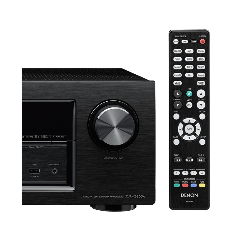 Denon fue el primer fabricante de receptores A / V en utilizar los avanzados algoritmos de audio DSP de Audyssey, Denon ha presentado el mayor número de productos equipados Audyssey, y el AVR-X3300W cuenta con la suite de plata Audyssey de funciones DSP, que incluye MultEQ XT Sub EQ, Dynamic EQ y Dynamic Volume . Los ajustes afectan a la acústica del sistema de medición y la corrección automática de la habitación. MultEQ XT hace coincidir los parámetros de los altavoces y la acústica de la sala. MultEQ XT proporciona una mayor precisión de filtro para todos los altavoces, con 8 veces la resolución en comparación con el sistema MultEQ base, en un máximo de 8 puntos de medición. Audyssey Dynamic EQ utiliza algoritmos avanzados psicoacústicos para novomusica ajustar continuamente el equilibrio tonal para que el sonido que se escucha sea la gama completa, incluso a niveles de volumen más bajo Audyssey Dynamic Volume suaviza volumen. Con la función Zone 2 podrá disfrutar del sonido estéreo de una fuente en una habitación, y sonido envolvente 5.1 de otra fuente en la habitación principal. Sólo tiene que conectar un par de altavoces estéreo a las salidas múltiples habitaciones amplificados. O conectar un amplificador estéreo y altavoces separados a la zona 2 salidas de preamplificador, y disfrutar del completo sonido envolvente de 7 canales en la sala principal. Los terminales de altavoz de alta calidad cuentan con la capacidad de conexión de múltiples vías para manejar una amplia variedad de tipos de terminación de cable del altavoz. Son también de un código de color para la conexión correcta la primera vez, y se incluyen las etiquetas de cable de altavoz codificados por colores. El práctico puerto USB en el panel frontal le permite transmitir canciones directamente desde tu iPod touch, iPhone y iPad y cargar su dispositivo al mismo tiempo. También puede conectar una unidad USB o dispositivo NAS y escuchar archivos MP3 y WAV en el AVR-X3300W, los archivos de alta resolución incluyendo DSD (2,8 MHz) y decodificación sin pérdidas FLAC son compatibles. Hay cuatro selecciones rápidas con botones de función del panel frontal y del mando a distancia ergonómico, que le permiten llegar a sus fuentes favoritas rápidamente. Y la función de selección rápida recuerda la configuración de audio preferidos para cada uno.