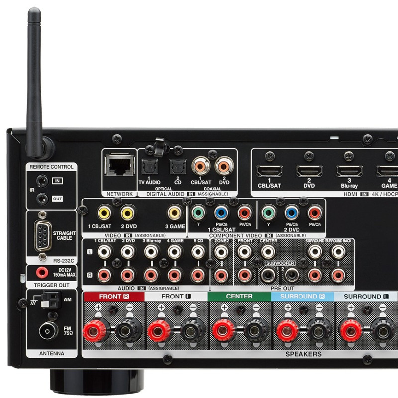 El AVR-X3300W cuenta con salidas de subwoofer dual, que le permite conectar dos subwoofers más pequeños en lugar de un solo sub grande, y disfrutar de los beneficios de un promedio de respuesta por tener dos subwoofers en diferentes lugares de la habitación. Con dos subwoofers obtendrá bajos más profundos, lo que minimiza los picos y valles que a menudo resultan con una sola configuración de subwoofer.