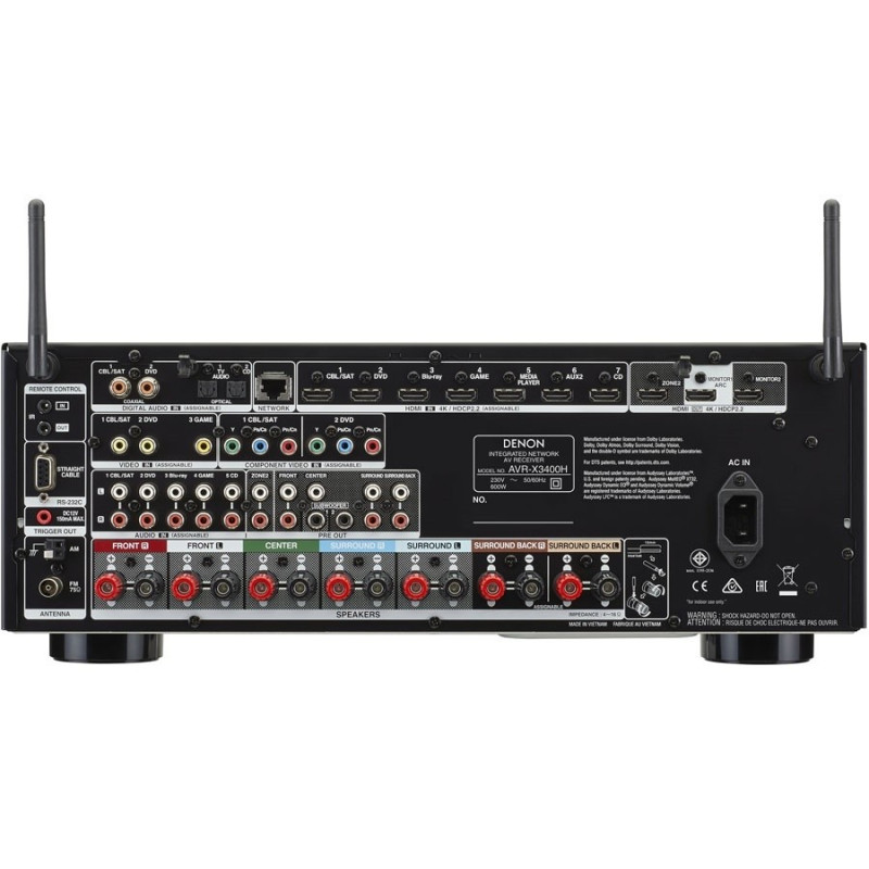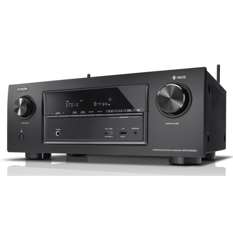 Denon AVRX3400Heos amplificador Cine en Casa. Receptor A/V de 7.2 canales Compatible Dolby Digital, DTS, TrueHD, DTSHD, Dolby Atmos y DTS:X Radio por Internet Compatible AirPlay, Spotify y DLNA 8 x Entradas HDMI 2.0a HDCP2.2 compatible 3D, 4K y HDR 2 x Salidas HDMI 2.0a HDCP2.2 compatible 3D, 4K y HDR Escalador de vídeo a 4K Puerto USB frontal 7 x 135 W a 6 Ω (todos los canales) 7 x 105 W a 8 Ω (todos los canales) Receptor Heos Link, WiFi y Bluetooth internos